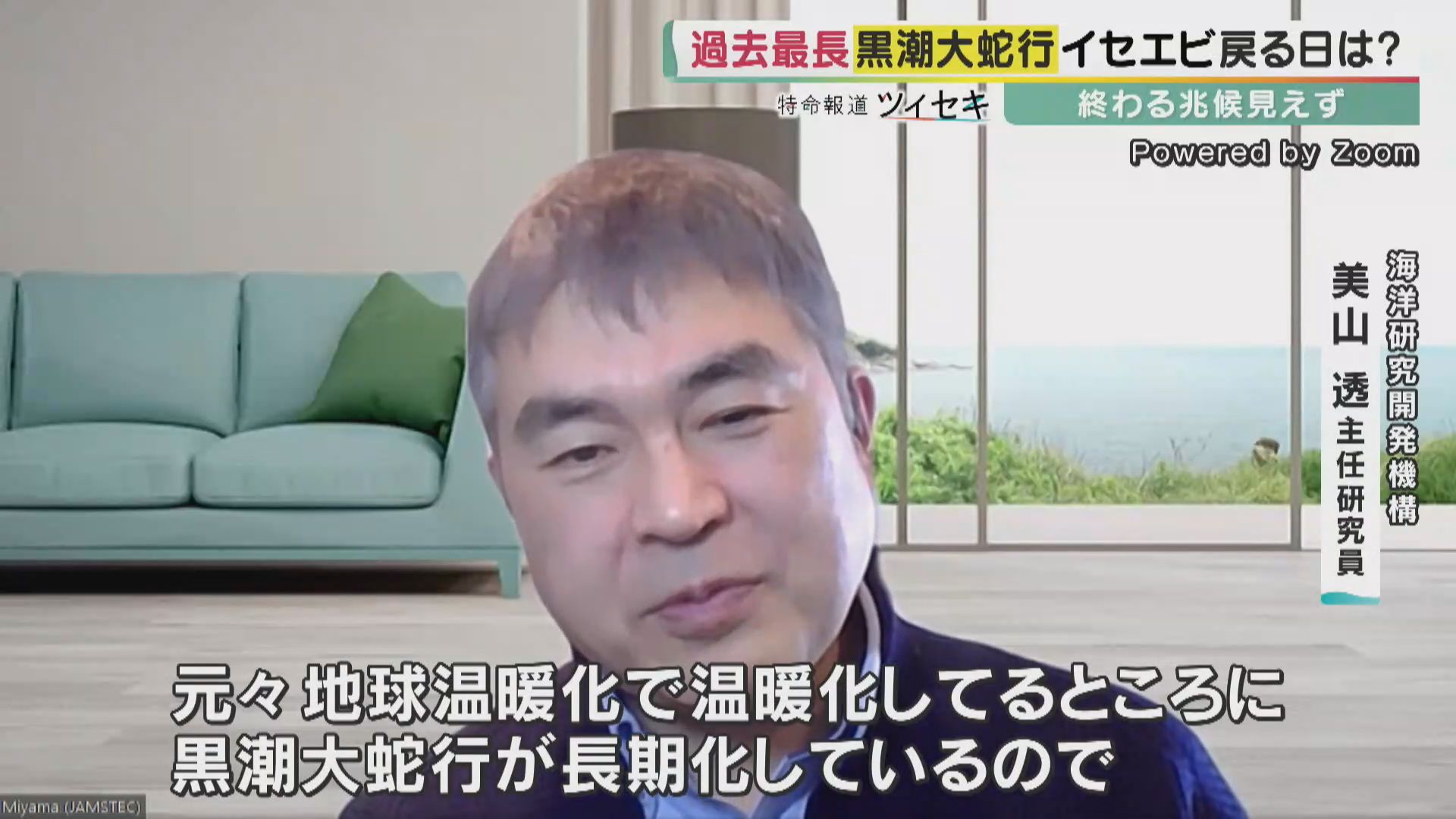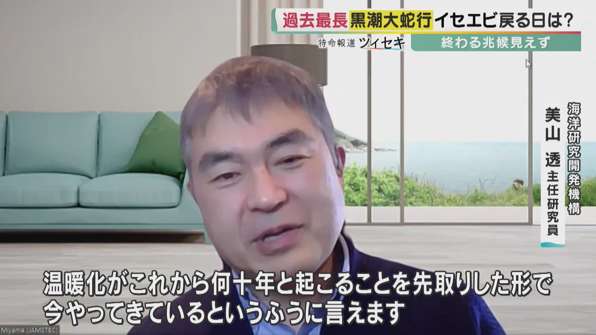 「元々、地球温暖化で温暖化しているところに、黒潮大蛇行が長期化しているので、二つの原因が重なって非常に悪い環境になっているということですね。地球温暖化が、これから何十年と起こることを先取りした形で、今やってきているというようなこともいう風に言えます」