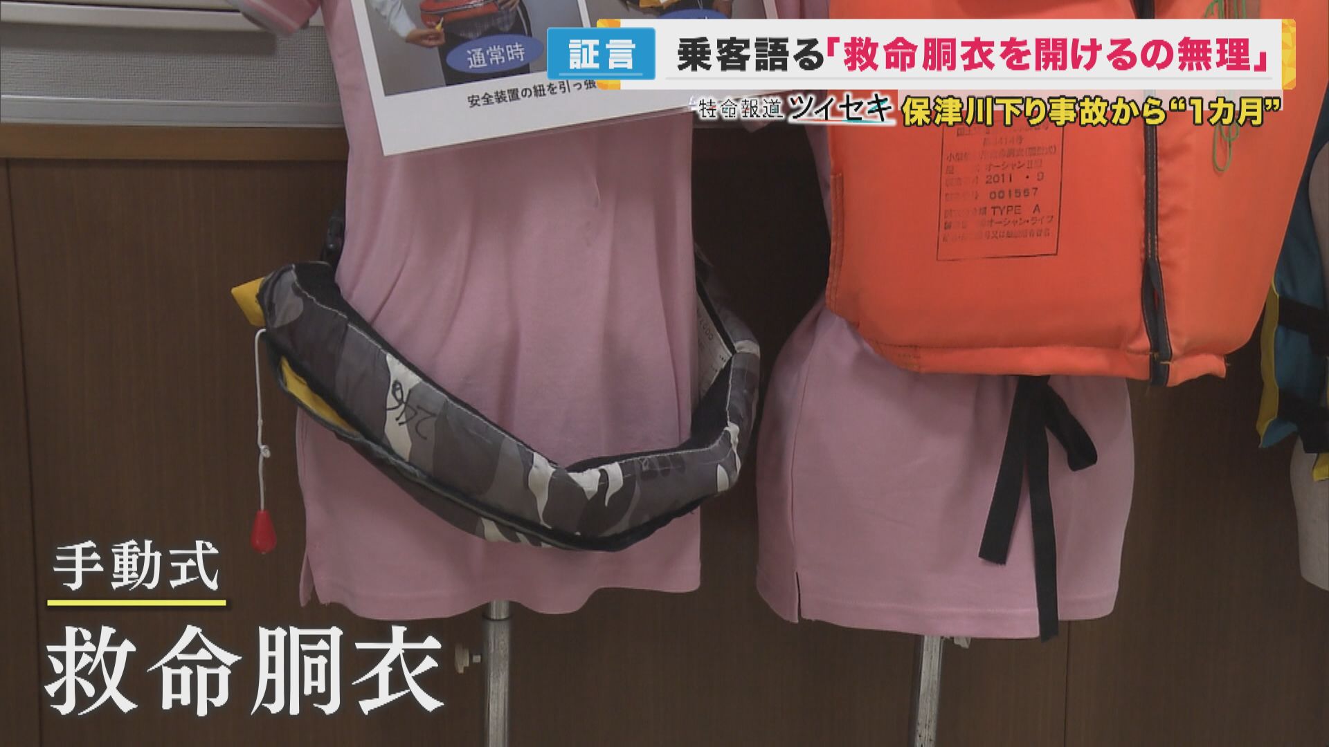 2人に渡された救命胴衣は、ひもを手で引っ張り膨らませる「手動式」のタイプでした。しかし、流れの早い水中で作動させることはできませんでした。