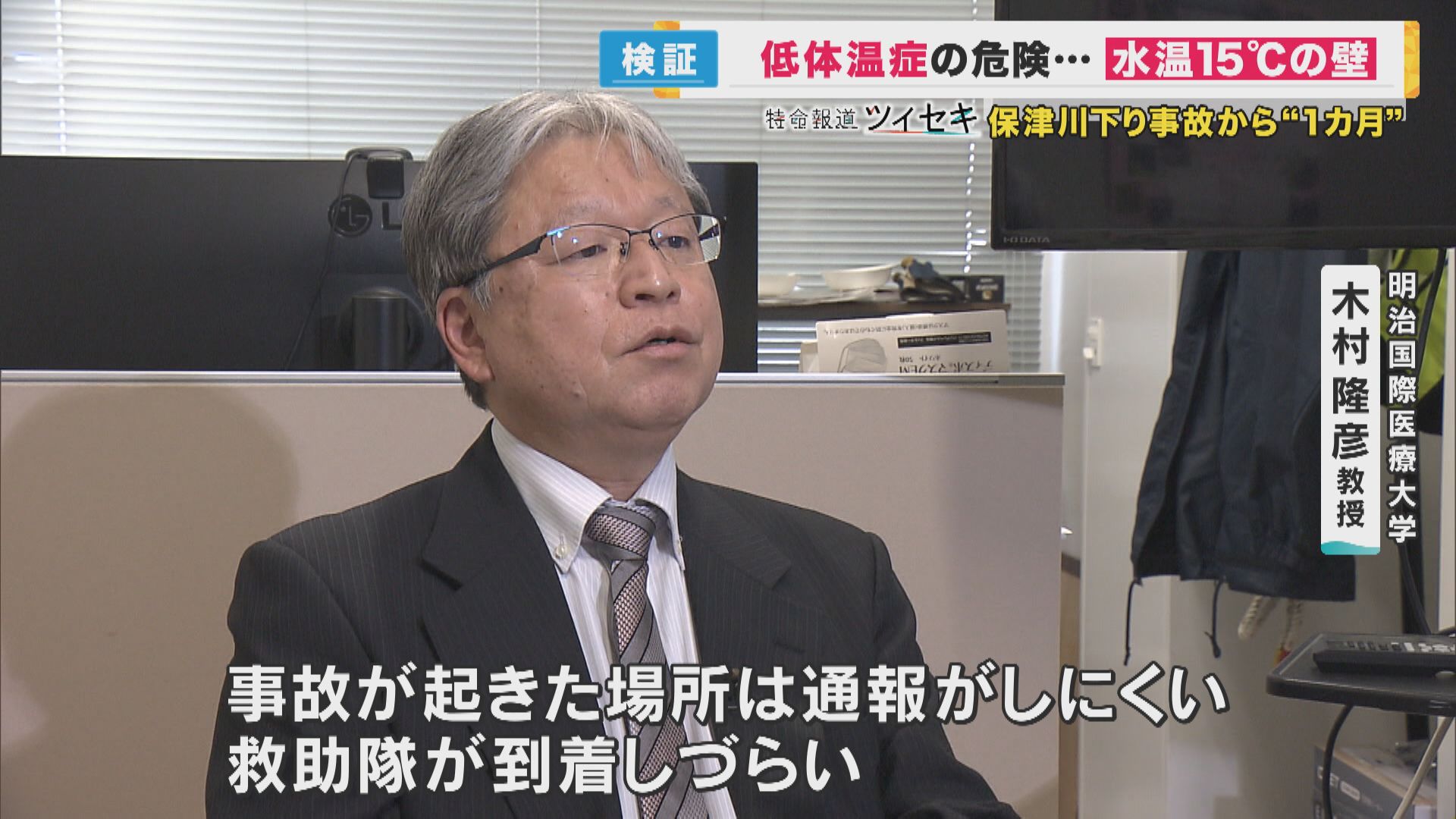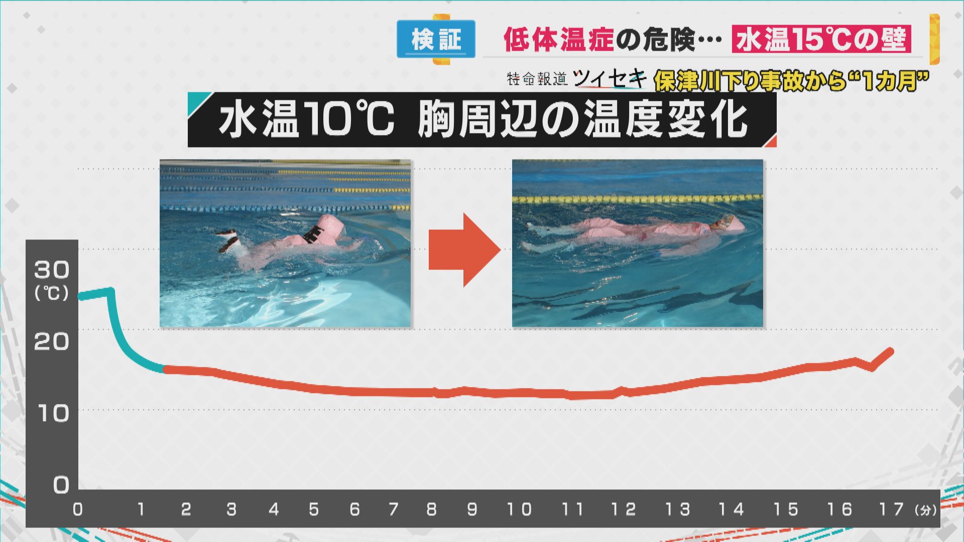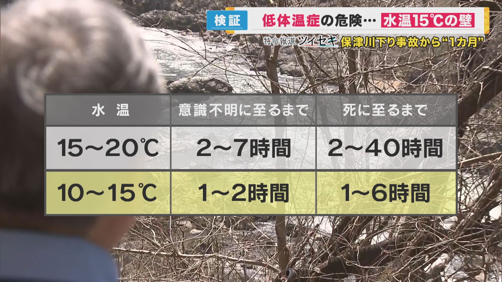 「今回、事故が起きた場所は通報がしにくく、救急隊が到着しづらい場所だった。救助を待つ時間が続いていた。それだけ水にさらされる時間は延びていったということ。すぐに水から上がれたとすれば水温が低くても生存する。意識を失うまでの時間を稼ぐことはできるが、水の中から出られない、救助隊の到着が遅いとなれば、水温の違いは非常に大きな意味を持ってくる」