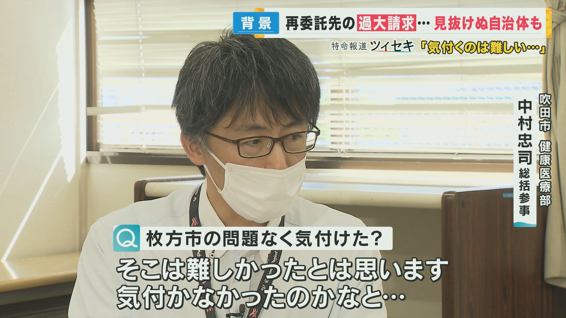 被害に遭っていた西宮市と吹田市は、枚方市での問題発覚を受けて、初めて過大請求をされていたことに気づいたといいます。
