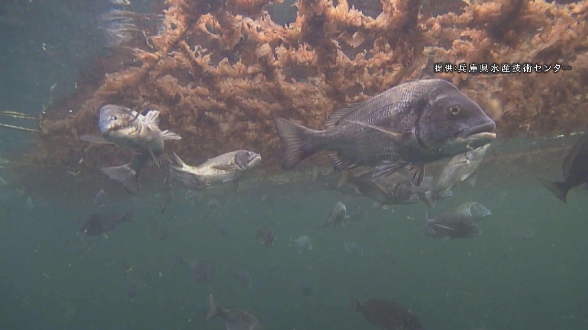 初摘みノリを狙うクロダイ。水産センターはノリの収獲期に食害が出ないようクロダイを捕獲していく方針です。