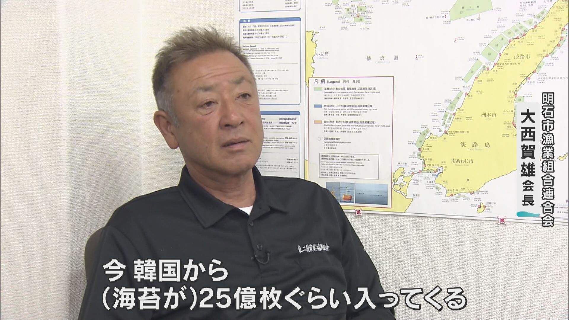 これにより、兵庫県が生産・販売額で20年ぶりに全国1位に。しかし…兵庫県の明石ノリの生産組合のトップ・明石市漁業組合連合会 大西賀雄会長は、全国的にみると、昨シーズンは目標の半分ほどしか取れていない状況を懸念し、ノリの不作に危機感を持っています。
