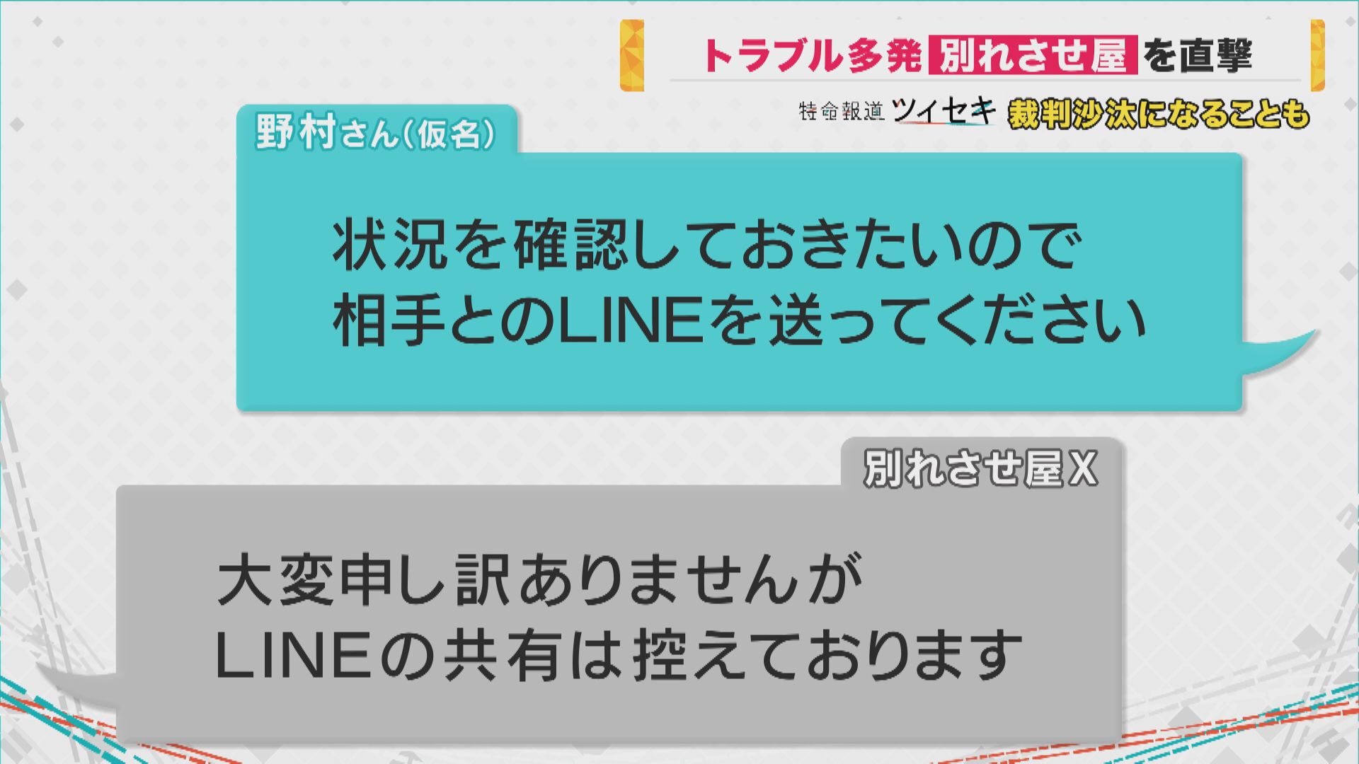 こうしたトラブルはほかの業者でもありました。関東に住む40代の高橋さん(仮名)は2022年、元交際相手と復縁をしたいと「別れさせ屋」に「復縁工作」を依頼しました。2つの業者に合わせて220万円を支払いましたが、だまされたと訴えます。