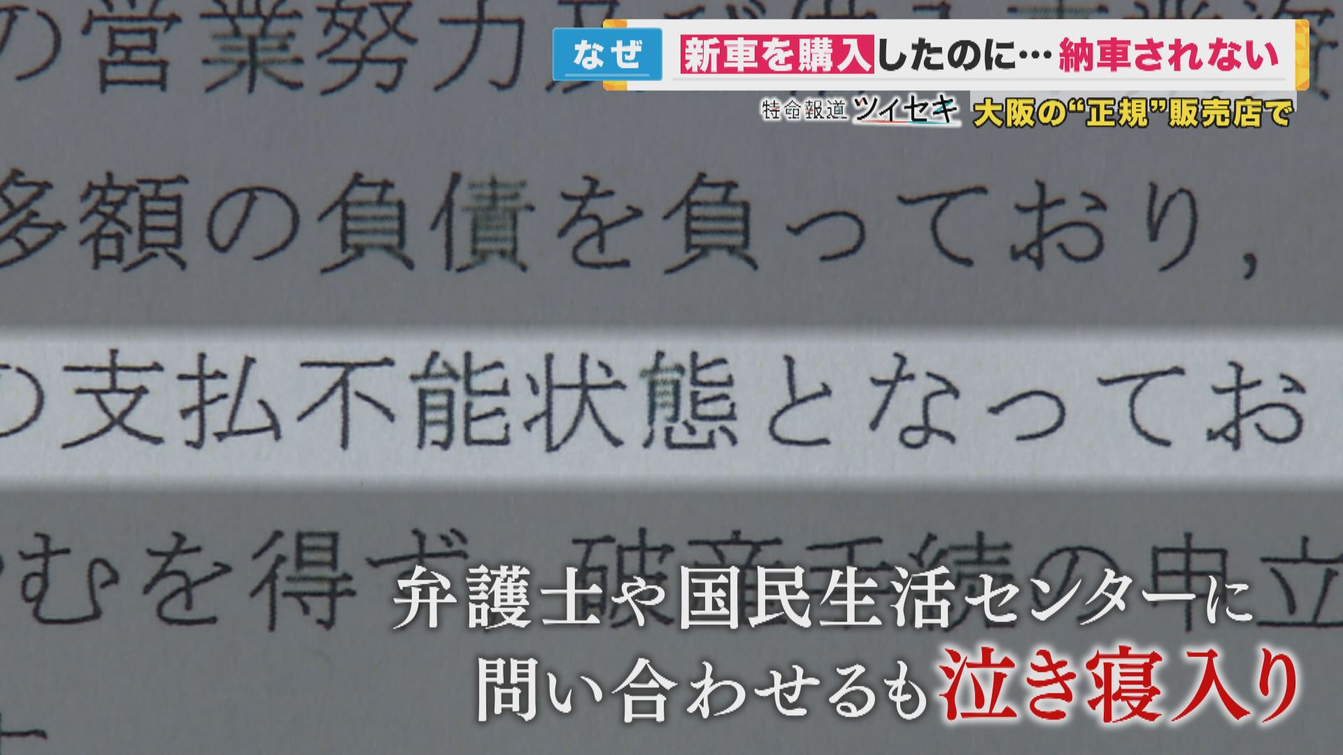 「新車を買ったのに納車されない」という問題について、3カ月前に奈良県内の正規販売店で起きた問題を番組でお伝えしました。同じことが今回、大阪でも起きてしまいました。
