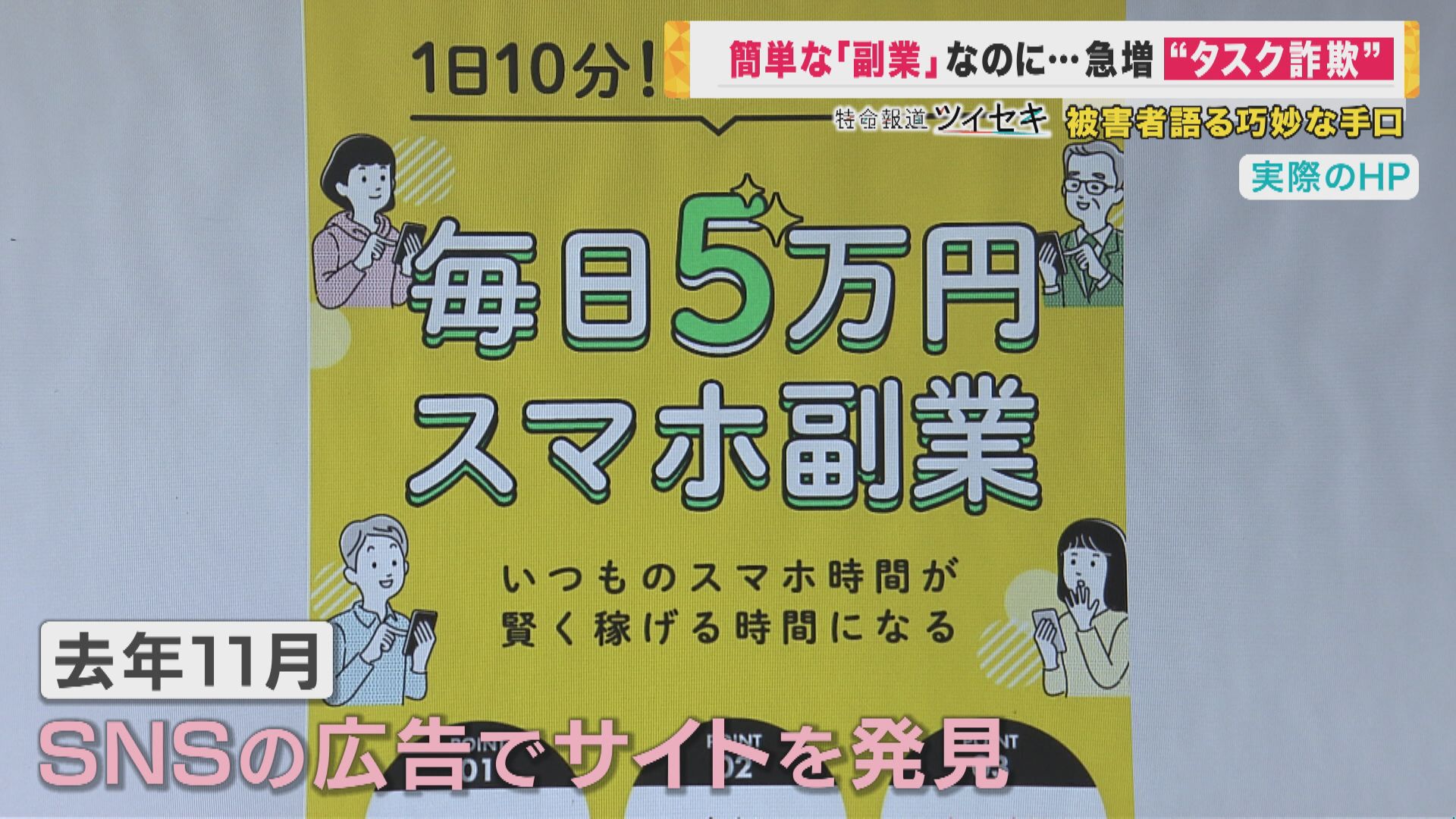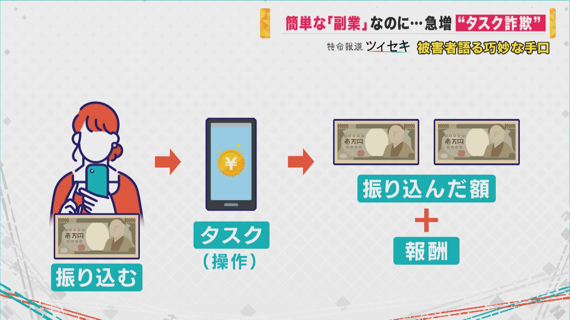副業ブームの今、「少しでもお金が欲しい」という心理につけ込み大金をだまし取る「タスク詐欺」が急増。