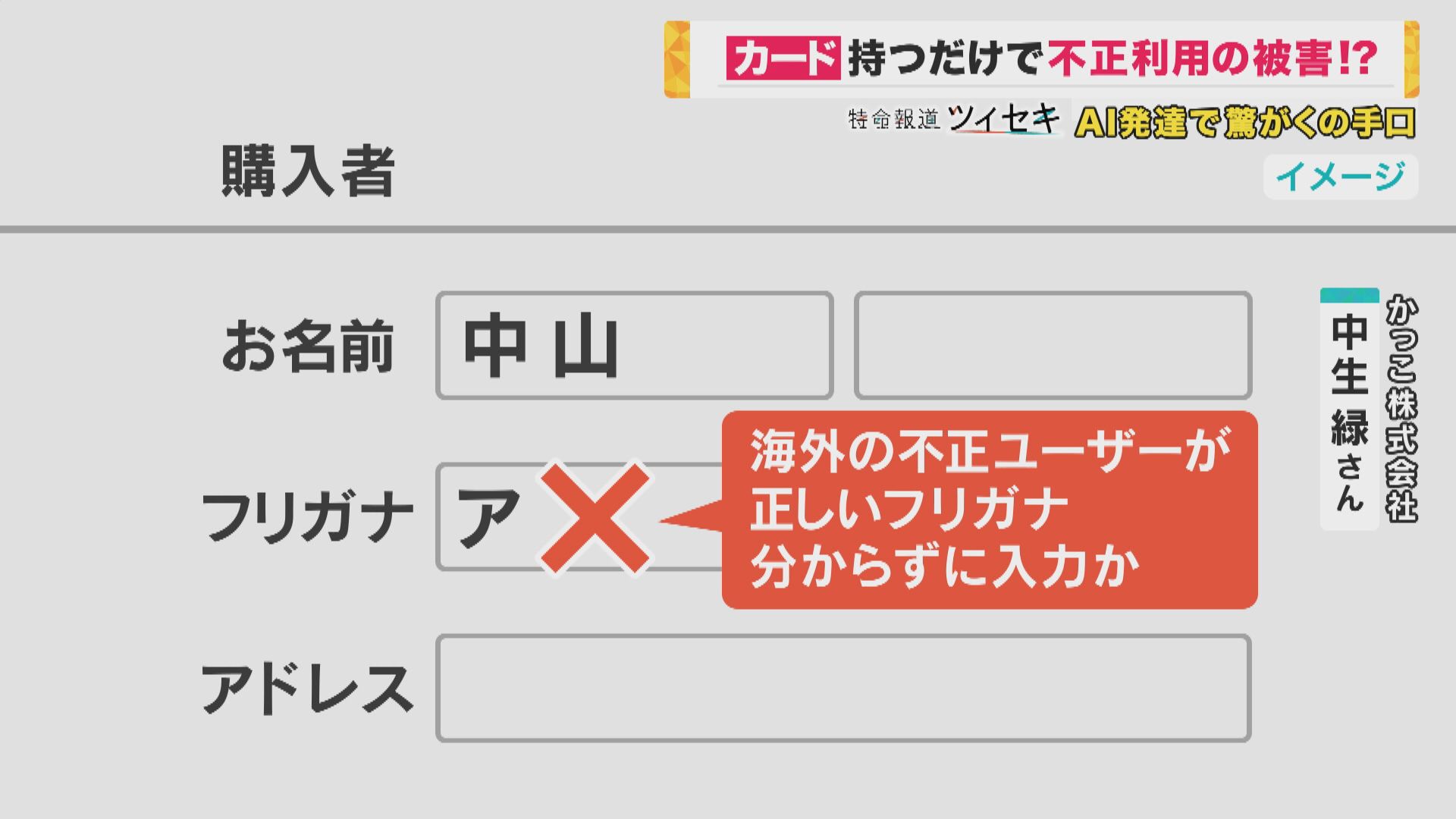 【かっこ株式会社 中生 緑さん】「例えば『中山』という名字に対して、本来は『ナカヤマ』というフリガナが入力されるはずなのに、それが「チュウザン」とか「ア」とか。不正注文は海外の不正ユーザーが多くて、フリガナが分からず、適当に書いているケースがある」