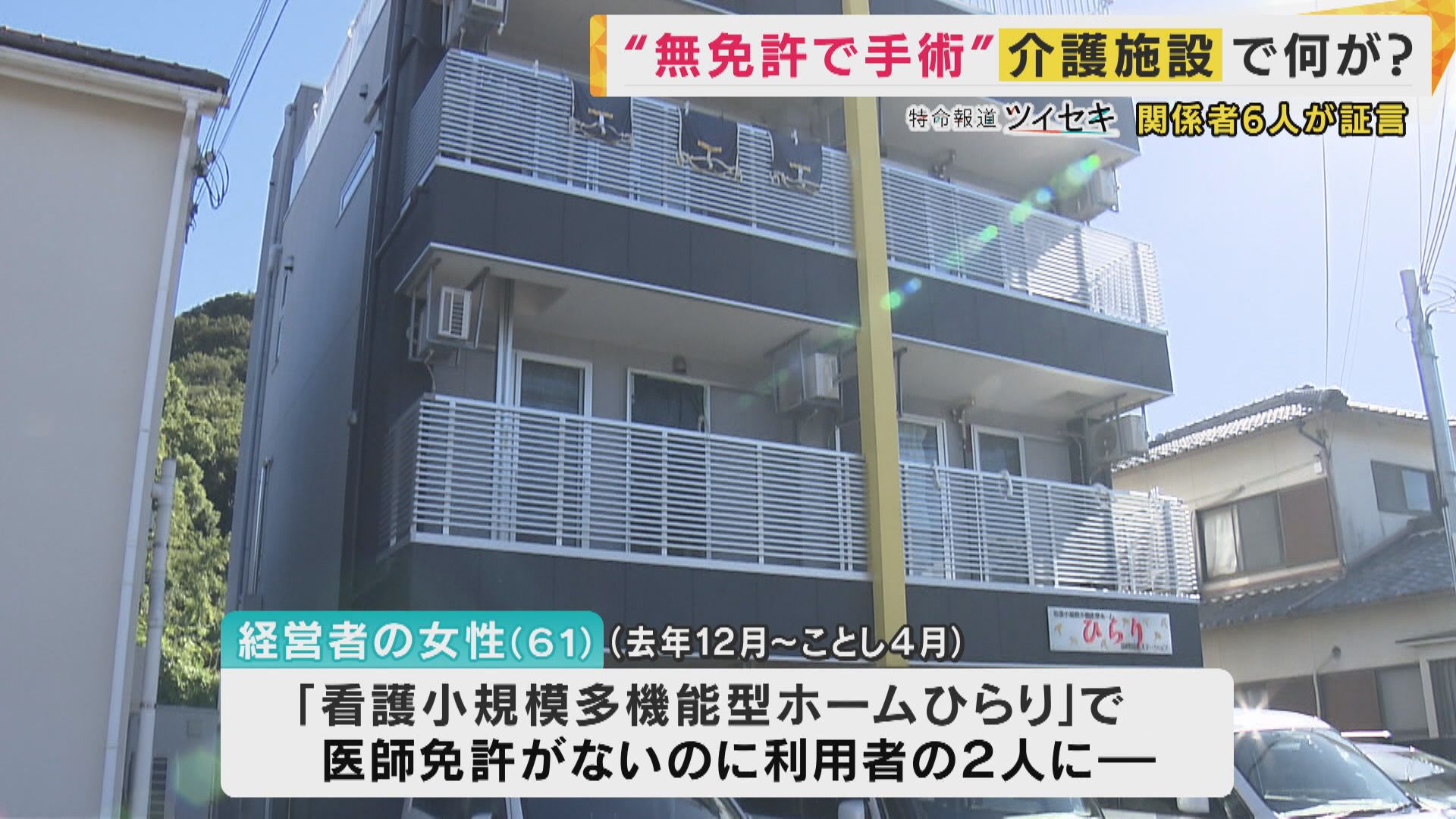 関係者によると、経営者は5年以上前から何度も、「床ずれの処置」などと称して無免許で手術を繰り返していたそうです。