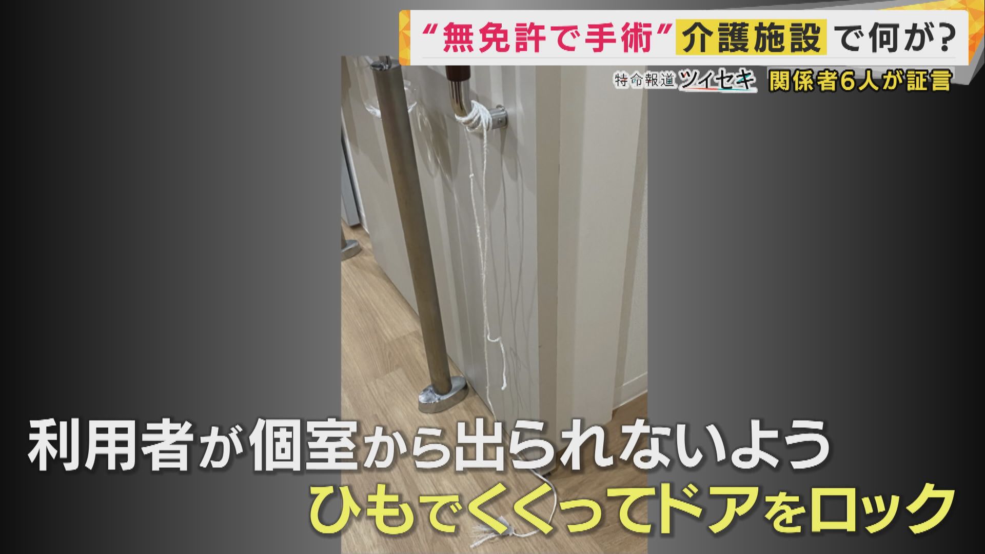 夜間、利用者が勝手に個室から出られないように、外側からひもでくくってドアを開かないようにもしていたというのです。そればかりか…。