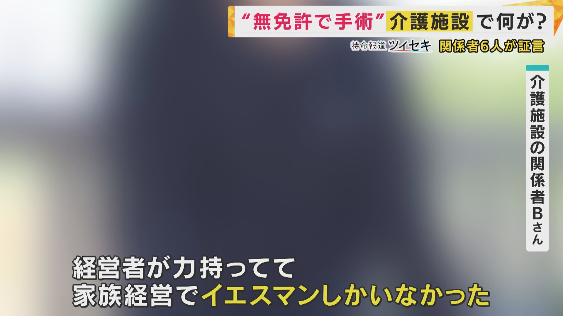 【施設の関係者 Bさん】「代表が力を持っていて。家族経営で、イエスマンしかいなかった。誰も止められなかった状態」