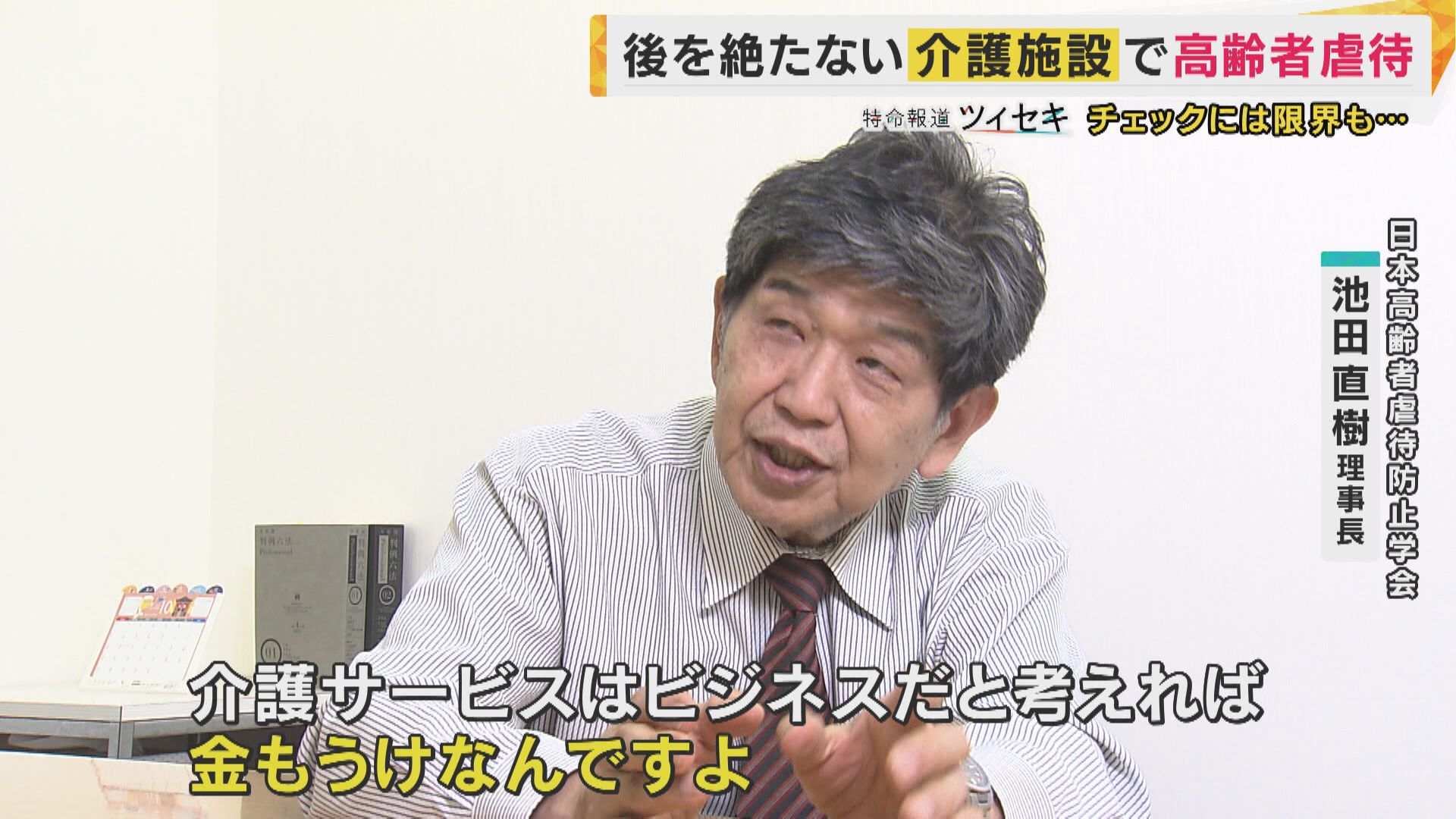 【日本高齢者虐待防止学会 池田直樹理事長】「介護サービスは“ビジネス”だという風に考えれば、金もうけなんですよ。仕事が増えると『余計なことをしてくれた』という感覚になってしまう。それが多分、虐待の、自分の仕事を邪魔しているというか、そういう感覚が根っこにあるんじゃないか」