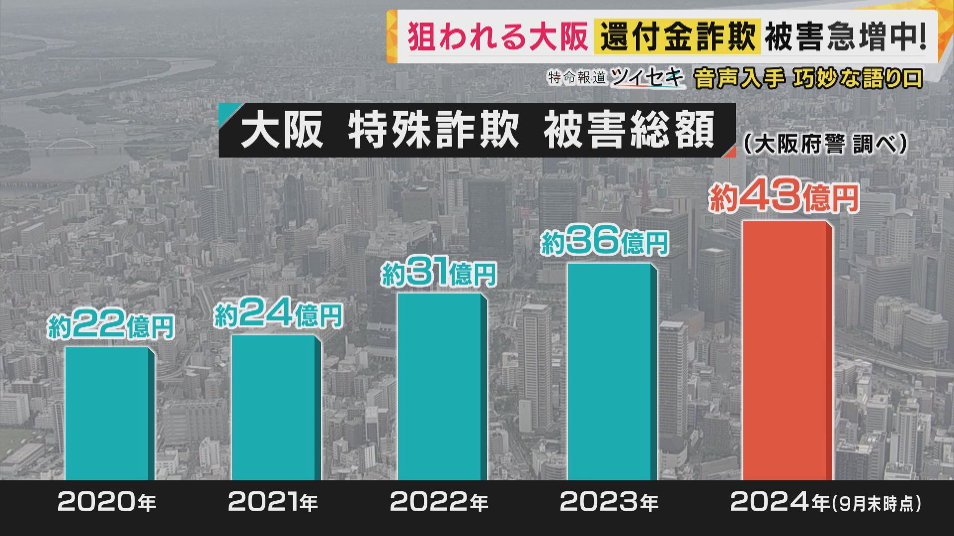 大阪府は特殊詐欺の被害金額が年々、増加傾向。今年は9月末時点で、去年1年間の被害総額を超えています。