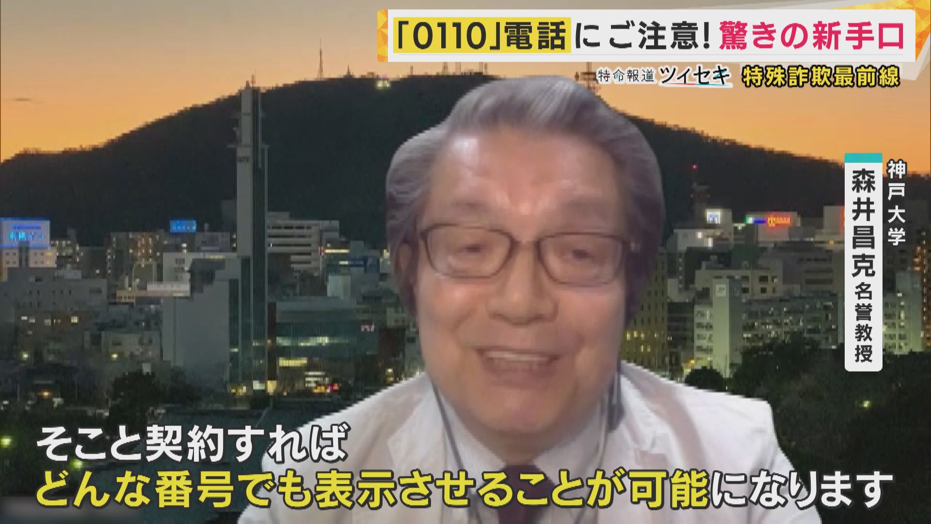 【神戸大学 森井昌克名誉教授】「海外の会社で、異なった任意の電話番号を通知するサービスがある。そこと契約すれば、どんな番号でも表示させることが可能になります」