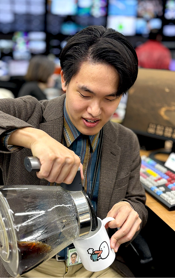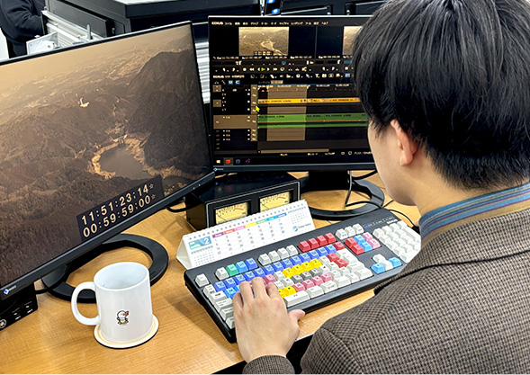 編集業務として、昼刊や夕刊のニュース番組『newsランナー』のVTR編集を担当しております。季節の話題、事件・事故など、現在世の中で起きている出来事を視聴者の皆様に届ける重要な役割です。まだ経験は浅いため、先輩方と同じニュースを編集し、フィードバックを受けながら日々研鑽を積んでいます。
