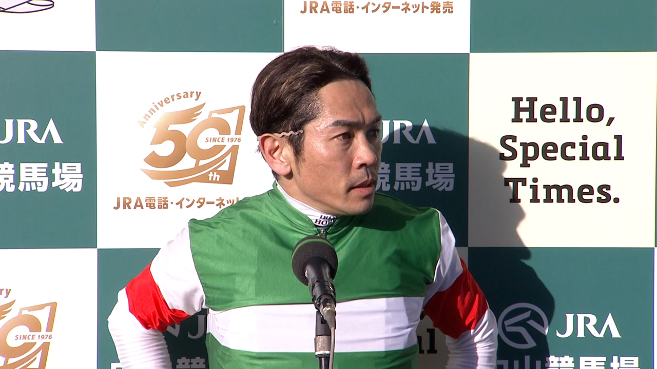 以前はイレ込みなど気性面に危うさを見せることもあった同馬だが、「今日は落ち着いていましたし、何よりも道中の折り合いがスムーズになっているんじゃないかなと。昔よりもすごく乗りやすくなっていて、いいリズムでした」と、精神面での確かな成長を勝因に挙げた。 直線で前が開くと、自慢の末脚が一気に爆発。「溜めれば速い脚を持っている馬。道が開いてからはすっと抜け出してくれました」と、その絶対的な能力を称賛した。