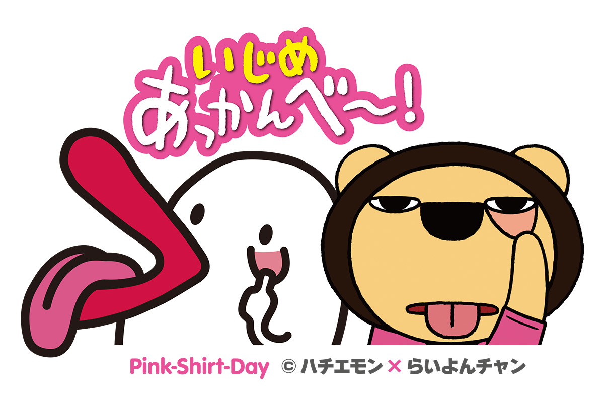 “いじめ反対”の意思を示すピンクシャツデーキャンペーン ハチエモン・らいよんチャンのタッグが実現!