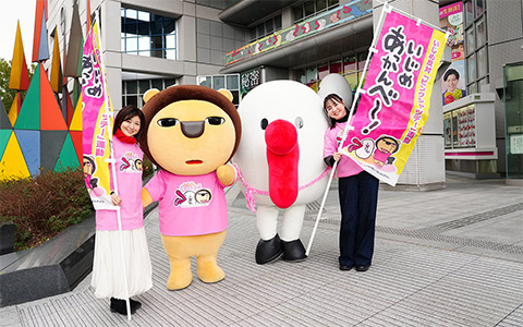 当日は、両局のキャラクターとアナウンサー、社員・スタッフがピンクのシャツを着用し、商店街を練り歩きながら、グッズを配布し、イベント翌週のピンクシャツデーへの賛同を呼びかけます!