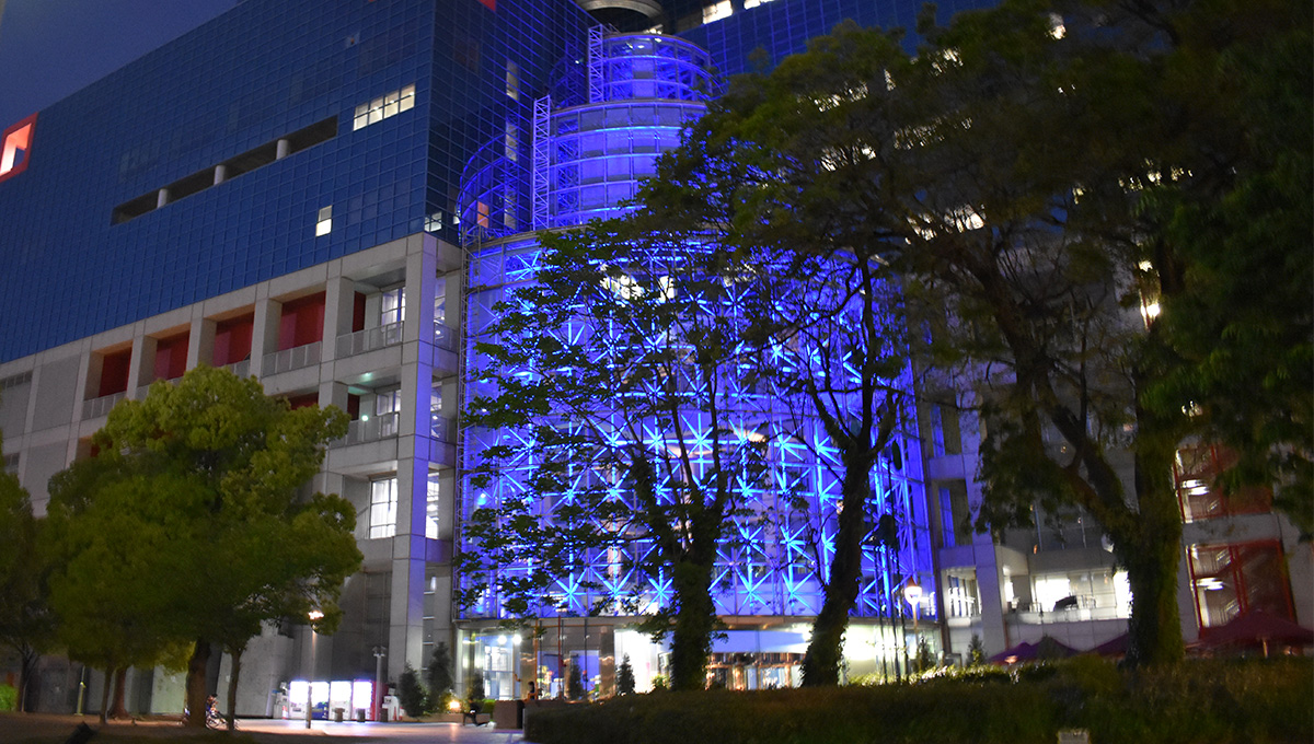 6月20日は国連が定めた「世界難民の日」です。今もパレスチナはじめ世界各地で多くの難民が人としての尊厳を踏みにじられる生活をしています。当社は、難民の保護と支援に関する関心を高め、国連機関やNGOによる活動への理解と支援を深める一環として、UNHCR(国連難民高等弁務官事務所)の呼びかけに賛同し、紛争や迫害で故郷を追われた人々との連帯の意思を示すものとして、6月20日にUNHCRのシンボルカラーであるブルーでカンテレ社屋をライトアップしました。