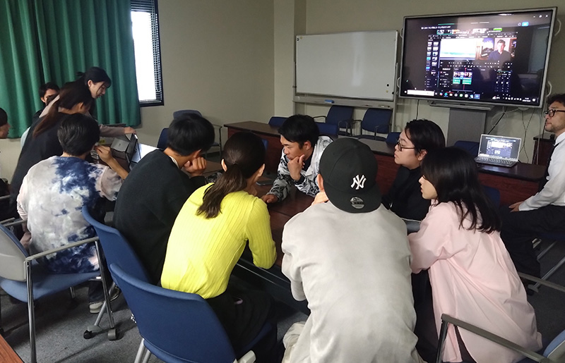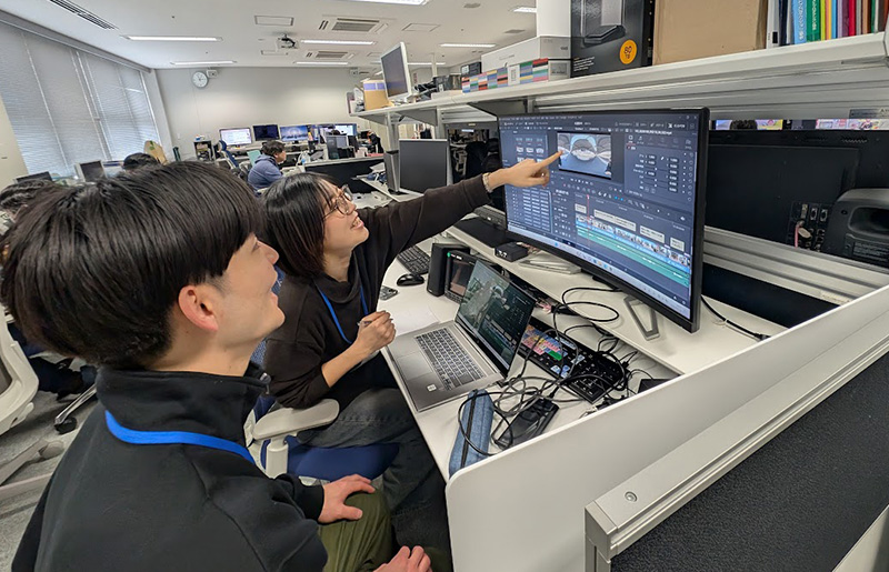 関西テレビの協力のもと、学生たちは技術指導を受けながら作品を完成させ、参加者にVRゴーグルで映像を鑑賞してもらいました。