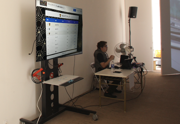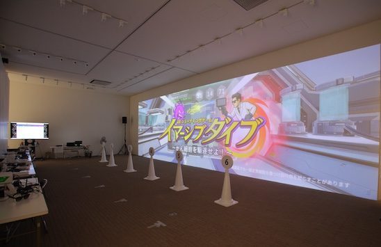 待機列の後方でゲーム説明動画が大画面上映され、またゲームエリアのプレイヤーのすぐ後ろではチュートリアルプレイをできるようにしました。これによりゲーム内での説明はなくし、回転率を高めました。