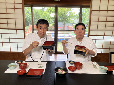 800メートルほど続く参道でお店をめぐり、老舗のうなぎ店「川豊本店」に。別館へ移動して実食…