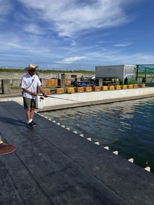 次に訪れたのは、手ぶらで行っても海の魚を釣ることができる、ファミリーにもおススメの「海釣りセンター」。昨年の釣り対決に引き続き、今年も30分1本勝負!