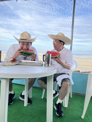 そして最終目的地の九十九里浜海岸に辿り着いた2人は豪華食材を使ったBBQを堪能。